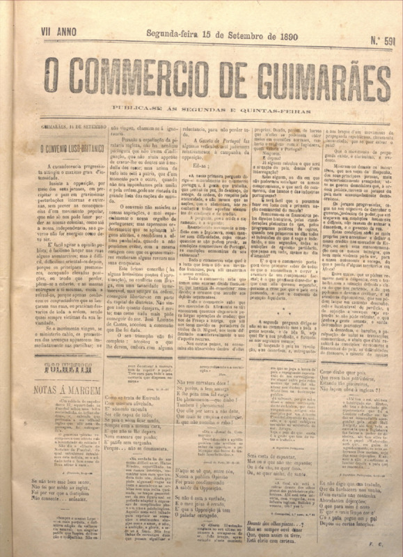 Comércio de Guimarães, nº 591, de 15/09/1890