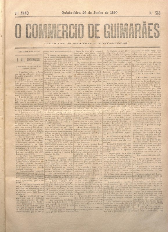 Comércio de Guimarães, nº 568, de 26/06/1890