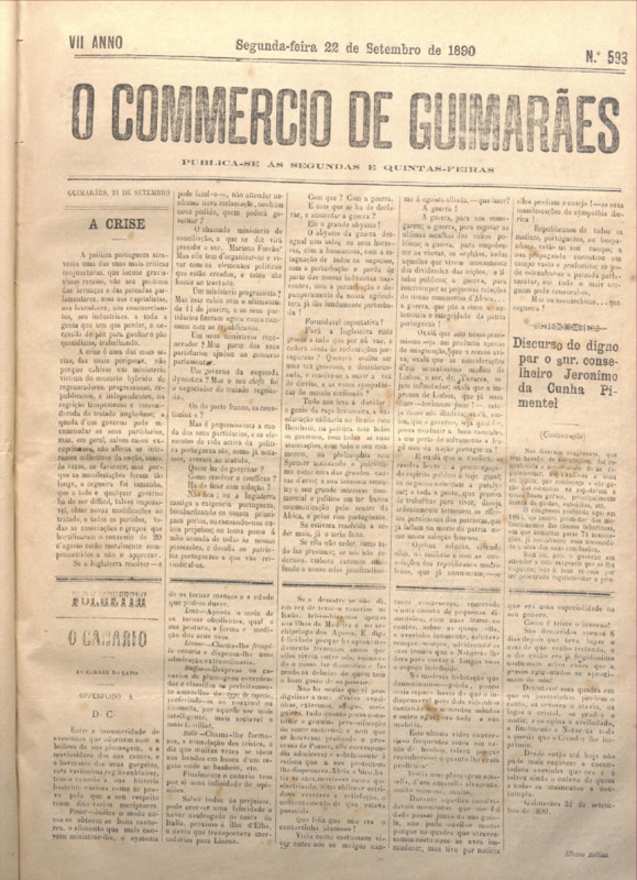 Comércio de Guimarães, nº 593, de 22/09/1890