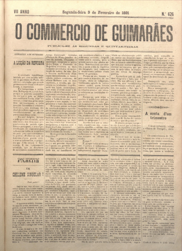 Comércio de Guimarães, nº 626, de 09/02/1891
