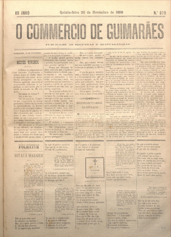 Comércio de Guimarães, nº 608, de 20/11/1890
