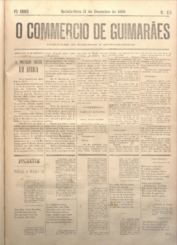 Comércio de Guimarães, nº 613, de 11/12/1890