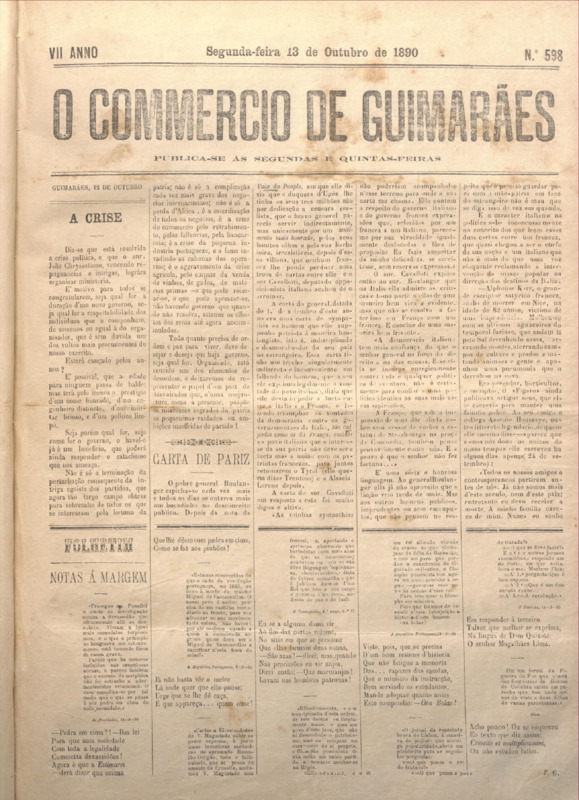 Comércio de Guimarães, nº 598, de 13/10/1890