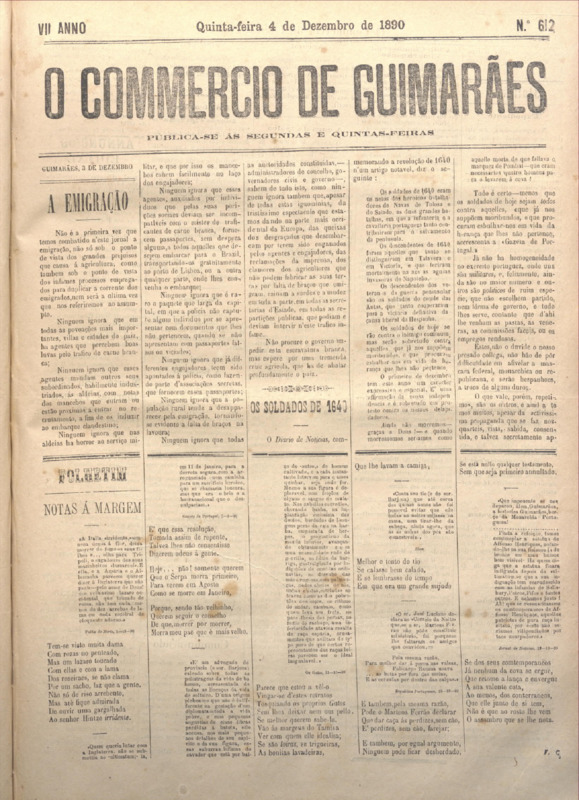 Comércio de Guimarães, nº 612, de 04/12/1890