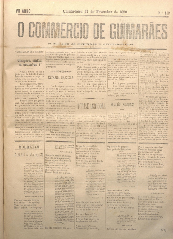 Comércio de Guimarães, nº 610, de 27/11/1890