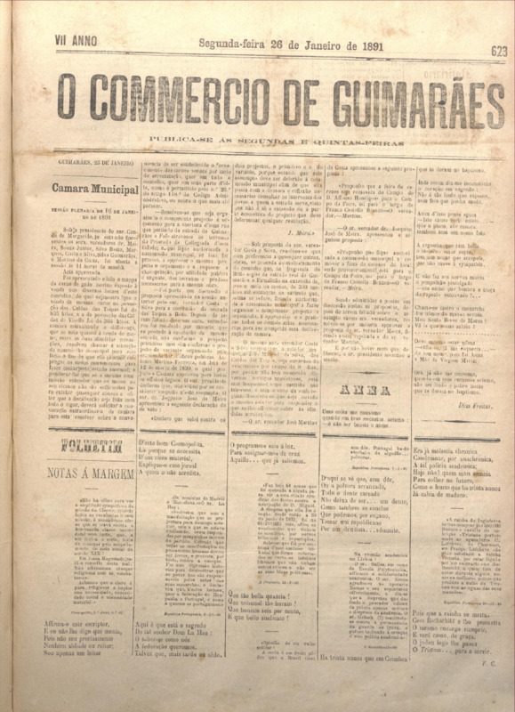 Comércio de Guimarães, nº 623, de 26/01/1891