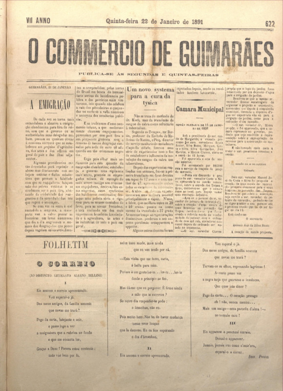 Comércio de Guimarães, nº 622, de 22/01/1891