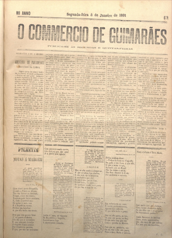 Comércio de Guimarães, nº 621, de 19/01/1891