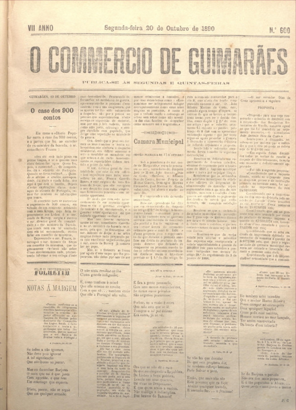 Comércio de Guimarães, nº 600, de 20/10/1890