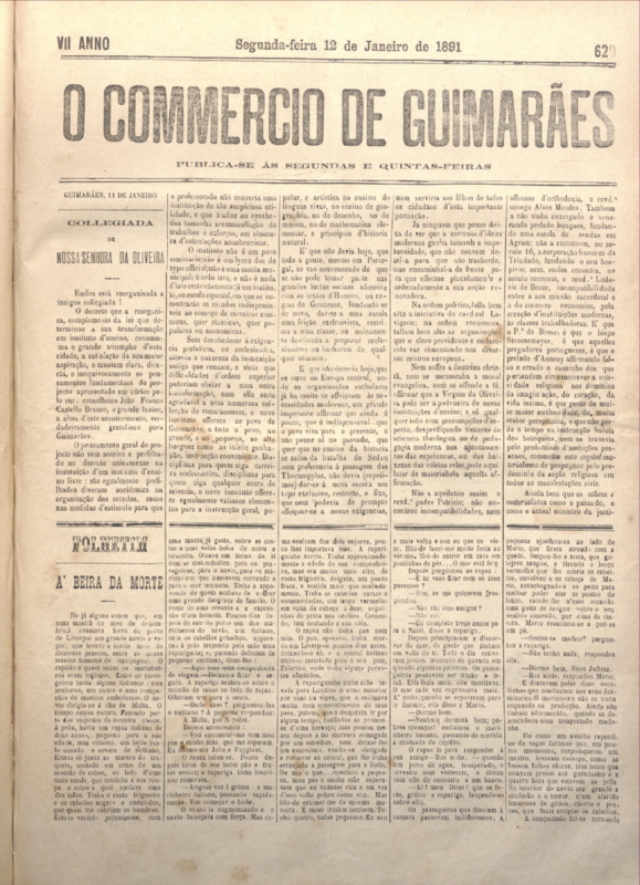 Comércio de Guimarães, nº 620, de 12/01/1891