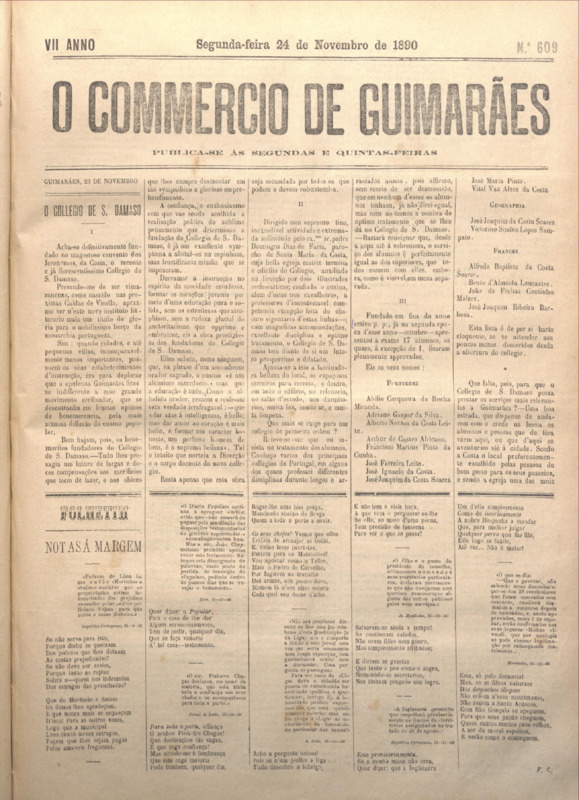 Comércio de Guimarães, nº 609, de 24/11/1890