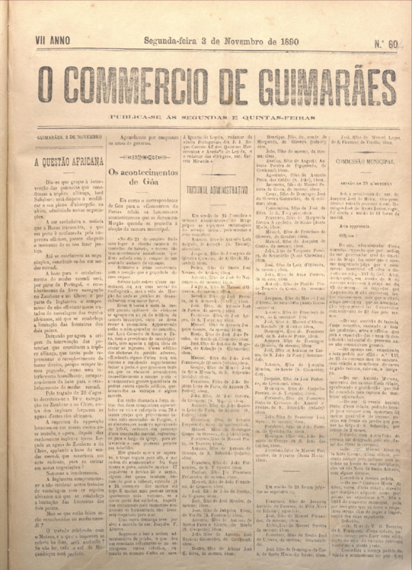 Comércio de Guimarães, nº 604, de 03/11/1890