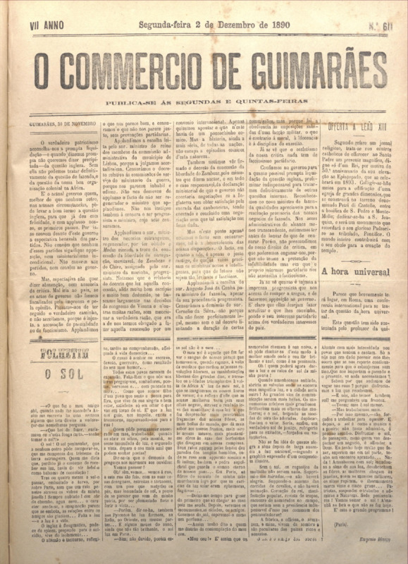 Comércio de Guimarães, nº 611, de 02/12/1890