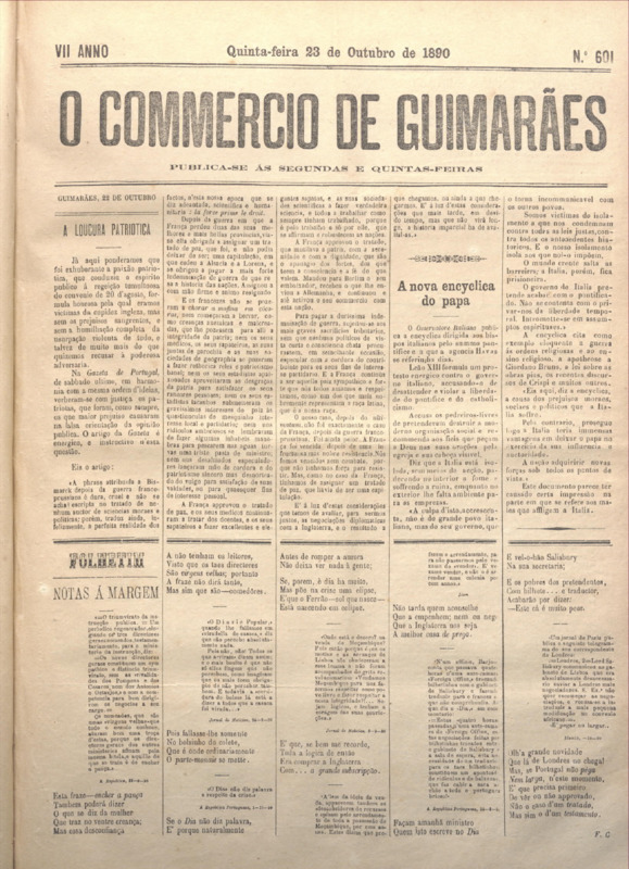 Comércio de Guimarães, nº 601, de 23/10/1890