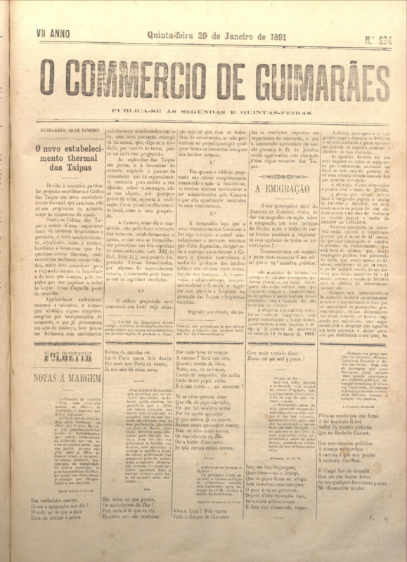 Comércio de Guimarães, nº 624, de 29/01/1891