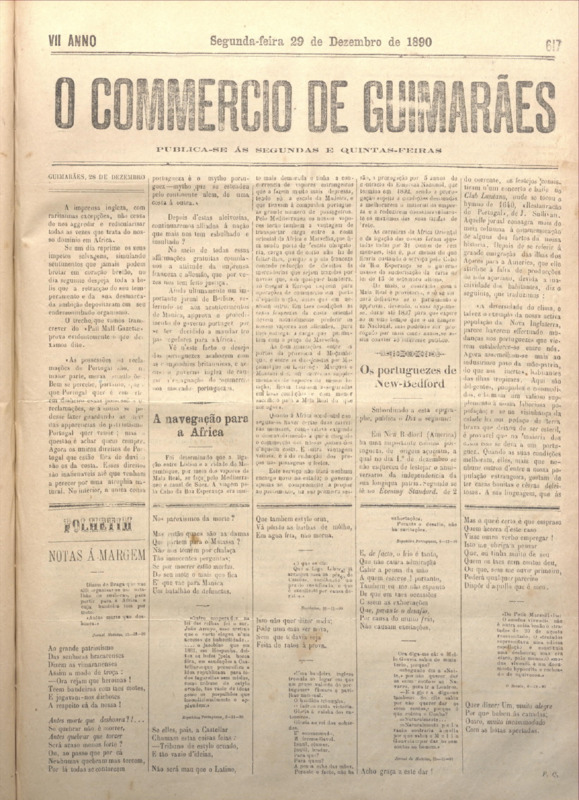 Comércio de Guimarães, nº 617, de 29/12/1890