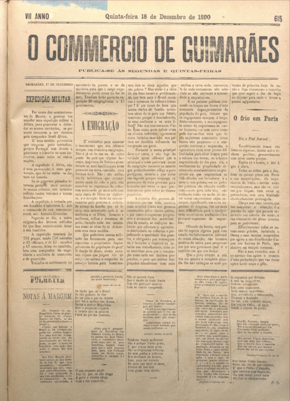 Comércio de Guimarães, nº 615, de 18/12/1890