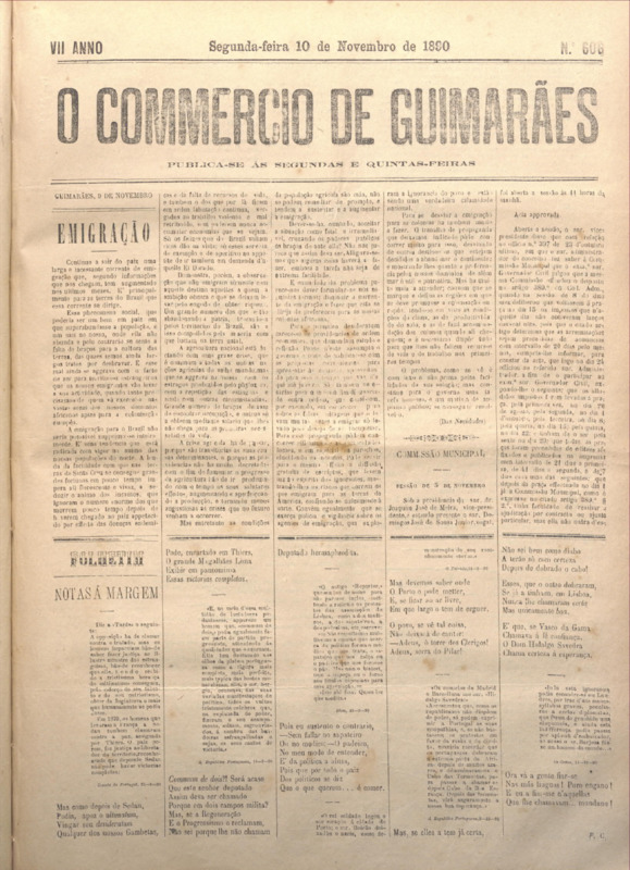 Comércio de Guimarães, nº 606, de 10/11/1890