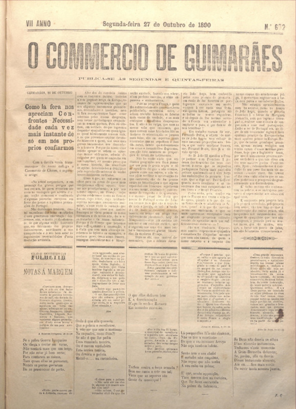 Comércio de Guimarães, nº 602, de 27/10/1890