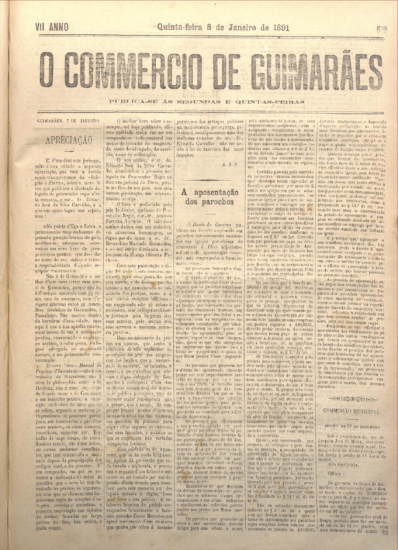 Comércio de Guimarães, nº 619, de 08/01/1891