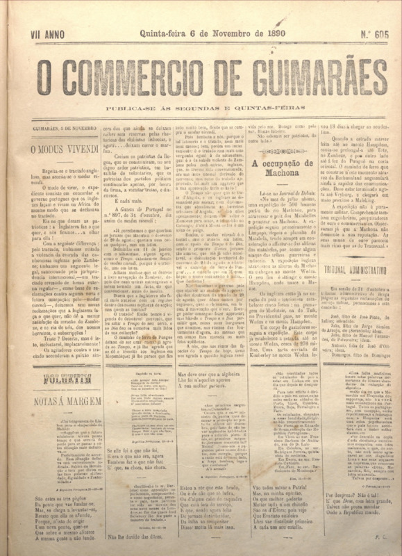 Comércio de Guimarães, nº 605, de 06/11/1890