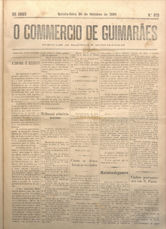 Comércio de Guimarães, nº 603, de 30/10/1890