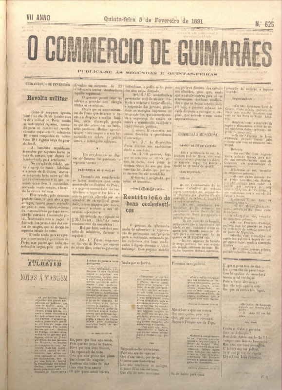 Comércio de Guimarães, nº 625, de 05/02/1891