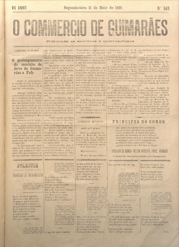 Comércio de Guimarães, nº 649, de 11/05/1891