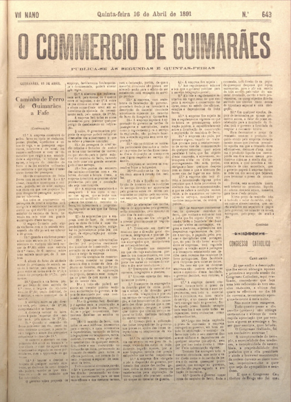 Comércio de Guimarães, nº 643, de 16/04/1891