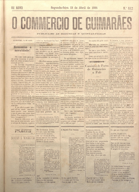 Comércio de Guimarães, nº 642, de 13/04/1891