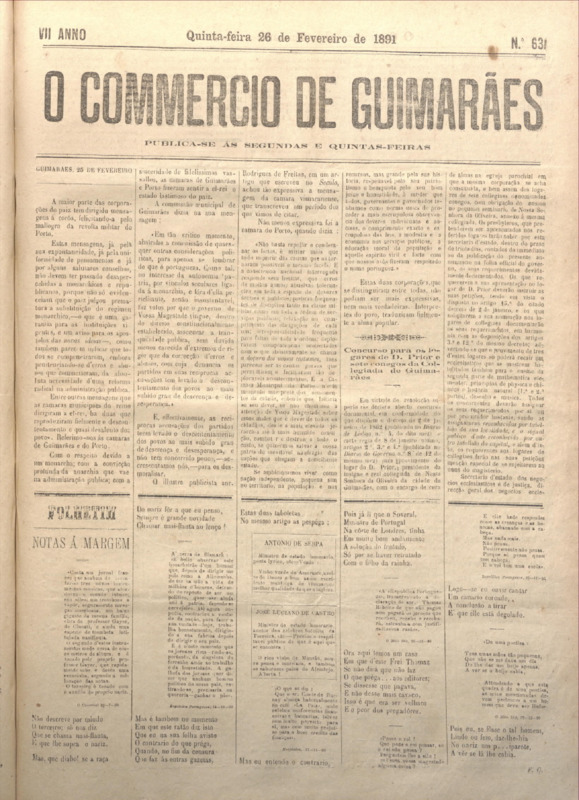 Comércio de Guimarães, nº 631, de 26/02/1891
