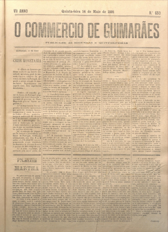 Comércio de Guimarães, nº 650, de 14/05/1891