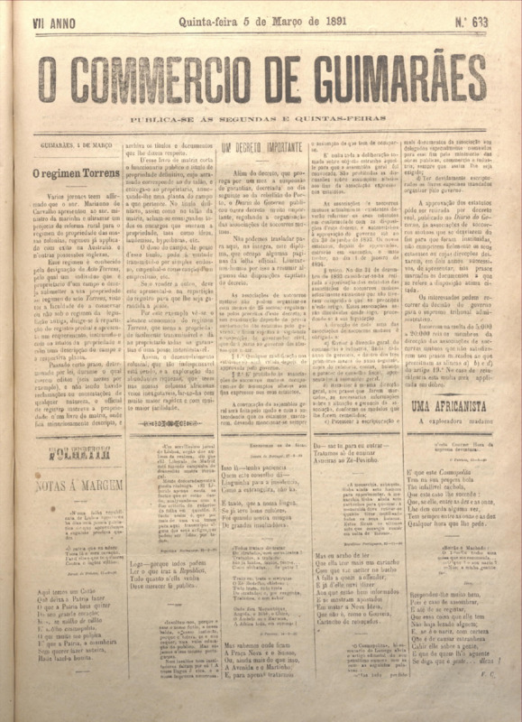 Comércio de Guimarães, nº 635, de 12/03/1891