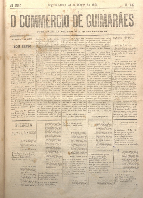 Comércio de Guimarães, nº 637, de 23/03/1891