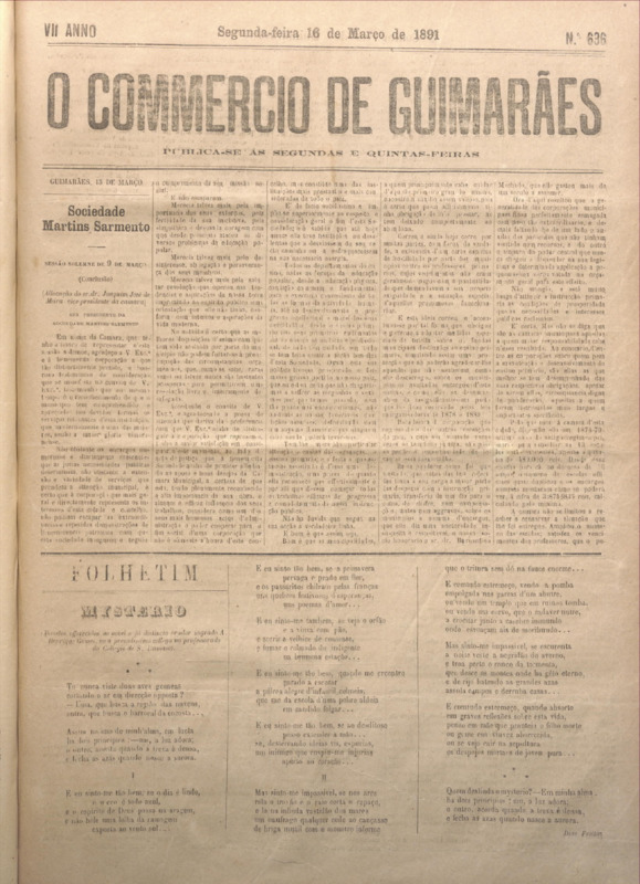 Comércio de Guimarães, nº 636, de 16/03/1891