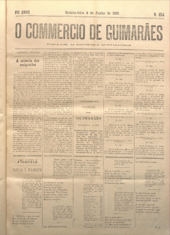 Comércio de Guimarães, nº 654, de 04/06/1891