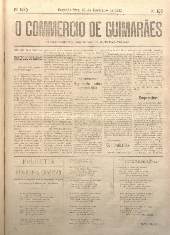 Comércio de Guimarães, nº 630, de 23/02/1891