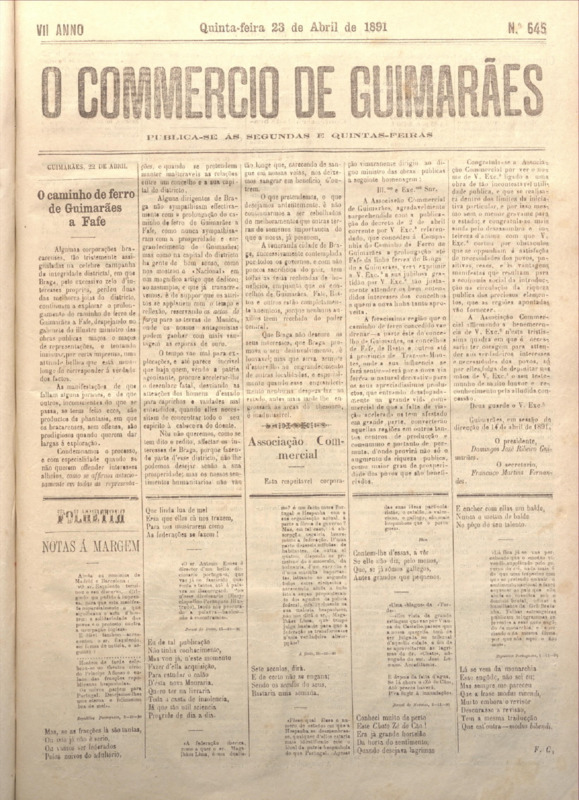 Comércio de Guimarães, nº 645, de 23/04/1891