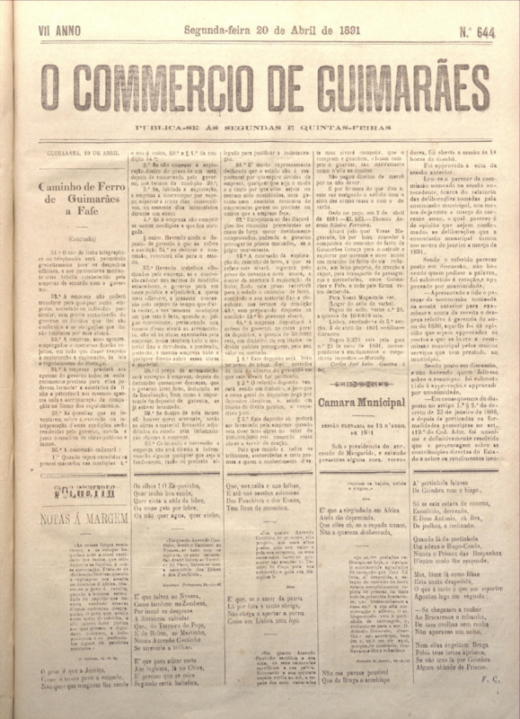 Comércio de Guimarães, nº 644, de 20/04/1891