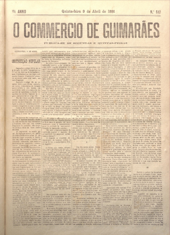 Comércio de Guimarães, nº 641, de 09/04/1891