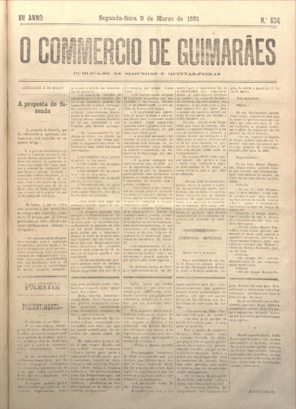 Comércio de Guimarães, nº 634, de 09/03/1891