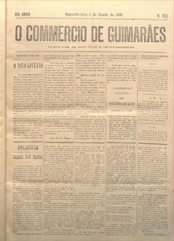 Comércio de Guimarães, nº 655, de 08/06/1891