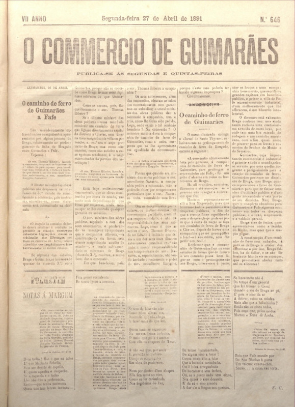 Comércio de Guimarães, nº 646, de 27/04/1891