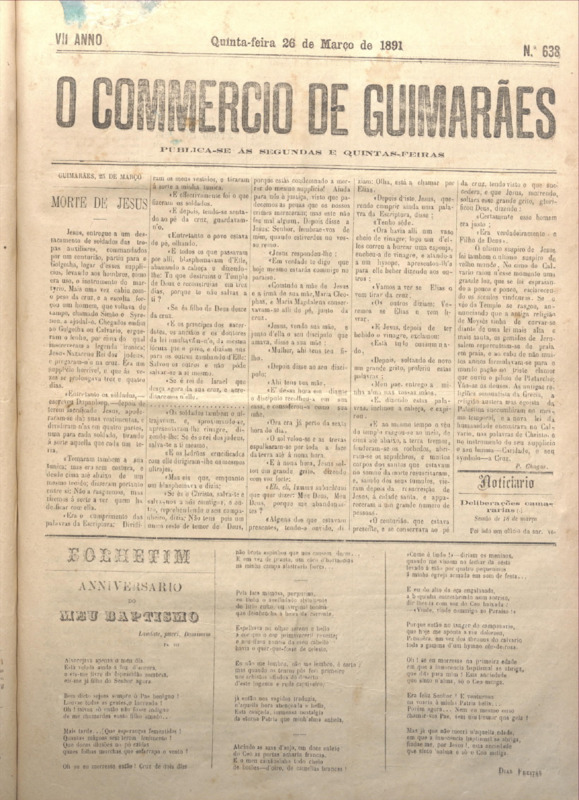 Comércio de Guimarães, nº 638, de 26/03/1891