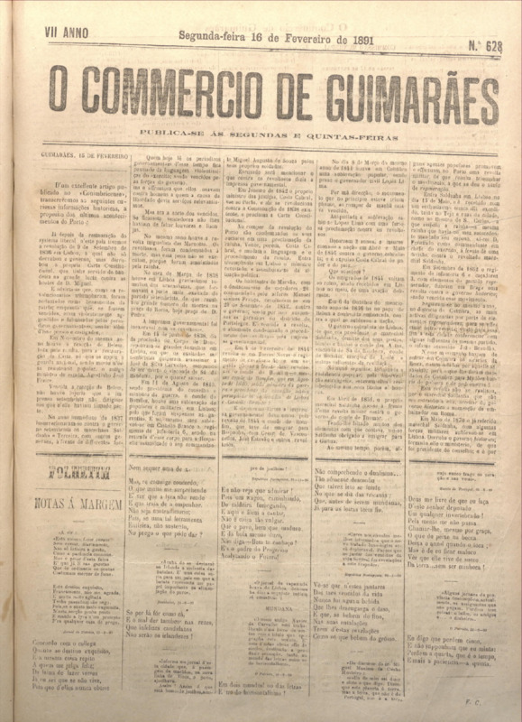 Comércio de Guimarães, nº 628, de 16/02/1891