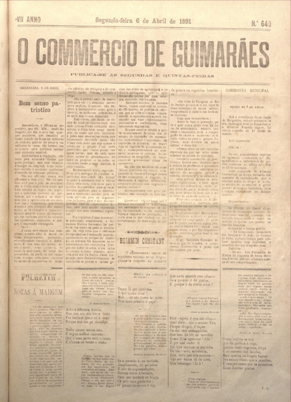 Comércio de Guimarães, nº 640, de 06/04/1891