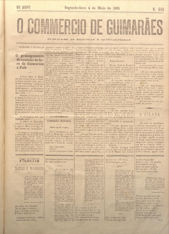 Comércio de Guimarães, nº 648, de 04/05/1891