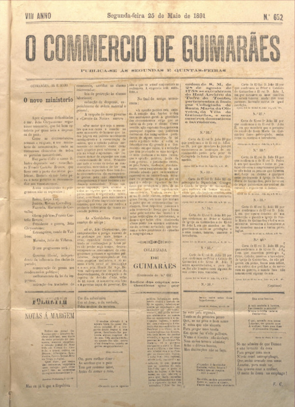 Comércio de Guimarães, nº 652, de 25/05/1891