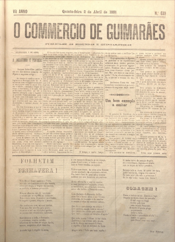 Comércio de Guimarães, nº 639, de 02/04/1891