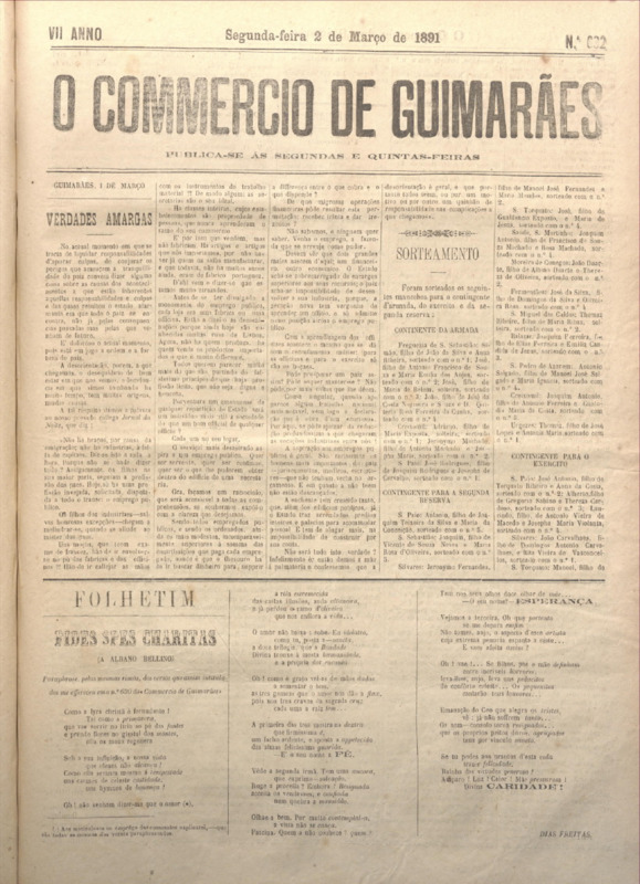Comércio de Guimarães, nº 632, de 02/03/1891